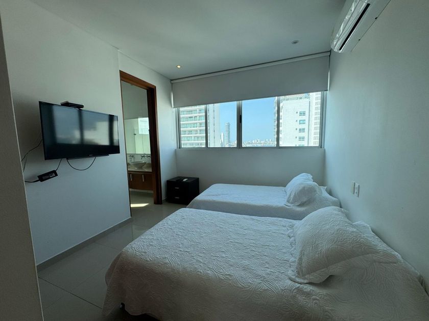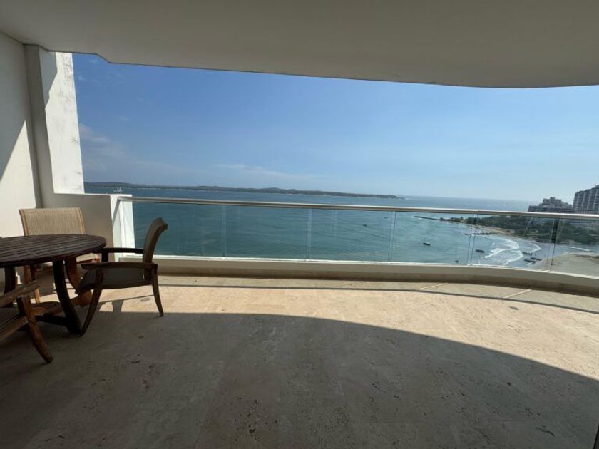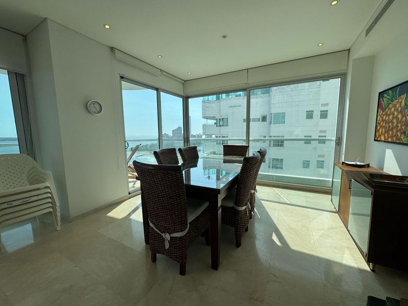 Excelente apartamento ubicado en zona residencial frente al mar de 3 alcobas cada una con su baño , baño social, cocina sala y comedor, alcoba y baño del servicio y 2 garajes y un cuarto útil. El edificio ofrece piscina, Jacuzzi, BBQ, Parque Infantil.