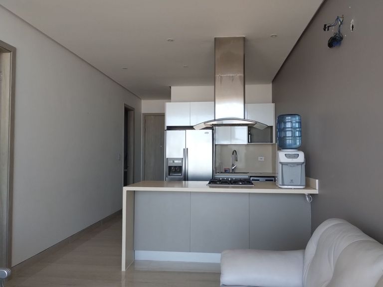 Apartamento en arriendo ubicado en Punta Roca, cuenta con hall de acceso, comedor, estar de tv, una habitación baño, cocina integral con mesón en cuarzo, pisos en mármol italiano, un balcón con excelente vista, en conjunto cerrado piscina, gimnasio, salon comunal zonas verdes, vigilancia y portería 24 Horas.