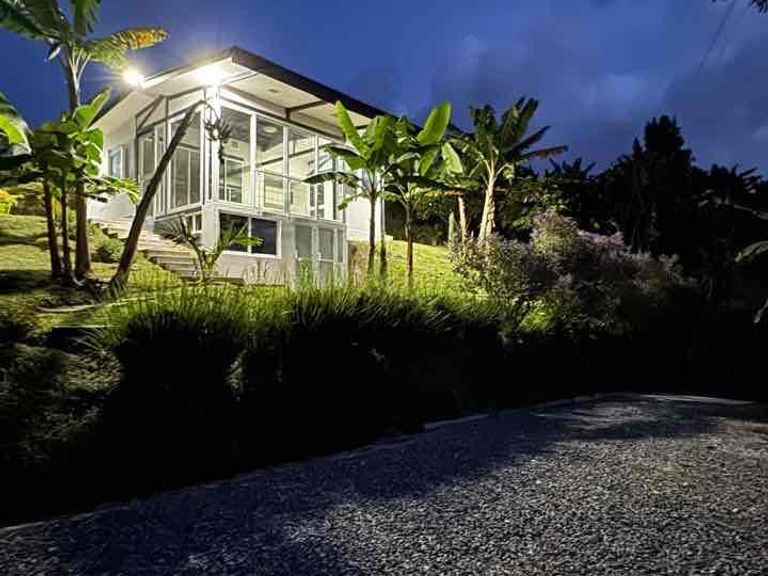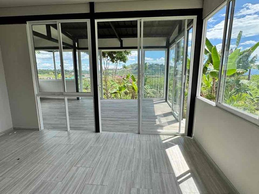 Está cabaña consta de 2 alcobas ambas con baño privado, las 2 divisiones de baño en vidrio templado de 8 mm. Sala comedor y la habitación cerrado con Alumino monumental y vidrio de 6 mm . Prados y jardines . Cerramiento en Eugenias , siete cueros y variedad de plantas . Pozo séptico con todas las normas ambientales y con plancha de 3 * 2 metros cubriéndolo. Agua de acueducto. Energía de pereira . Gas pipa por ahora , el gas domiciliario , pasa ...por la entrada a la finca,lo puede instalar cuando quiera , Parqueadero para 8 vehículos. Puerta de acero en la entrada a La finca . Tiene la zona de ropas y bodega pequeña para las herramientas, Arboles frutales produciendo , Plátano, banano, aguacate, mandarina , limón , guayaba, chirimoya, mango, y árboles ornamentales, guayacan amarillo, acacia amarilla , tulipán rojo , azúcenos blancos , La panorámica es excelente . Área del lote 1000 m2 . Está cerca a la variante Condina exactamente al frente de la estación de gasolina nueva, pero por la vía veredal y por esta vía pasan las busetas urbanas , cerca escuelas iglesia tiendas etc , de la vereda MONTELARGO. escritura en pro indiviso